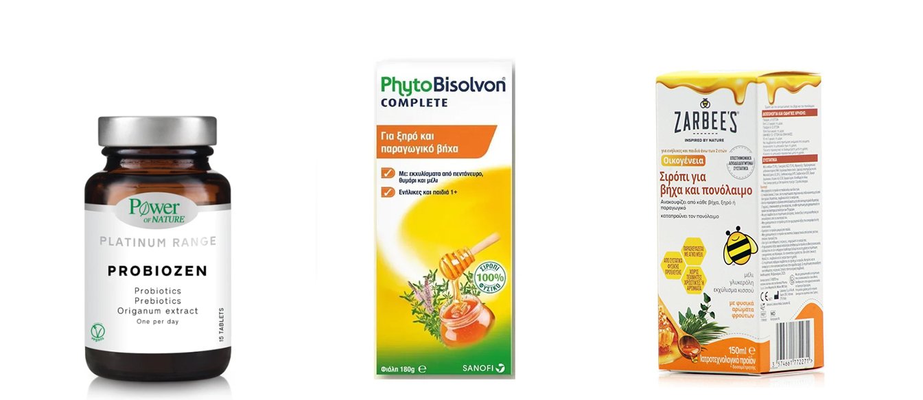 Αντιβηχικά: Καταστέλλουν το αντανακλαστικό του βήχα. Χρησιμοποιούνται για ξηρό βήχα, με μέτρο, και πάντα μετά από συνεννόηση με το γιατρό ή το φαρμακοποιό σου.