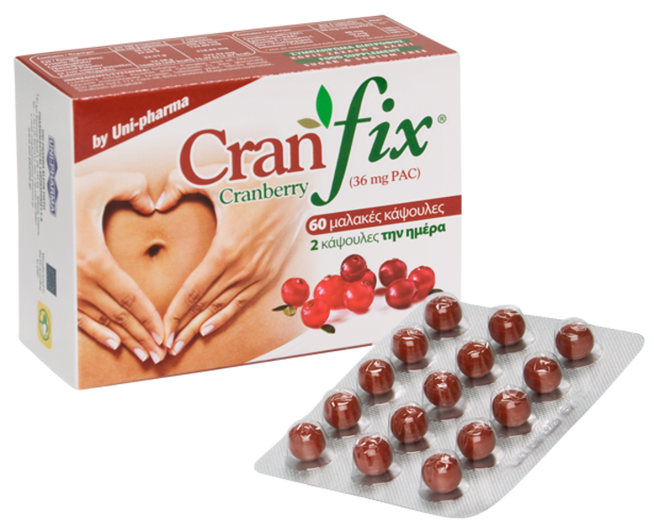 1 Το Cranfix είναι η πρόταση της πολύ καλής εταιρίας Uni-Pharma, και συνδυάζει μοναδικά το εκχύλισμα κράνμπερι με σελήνιο, βιταμίνη C και ψευδάργυρο.