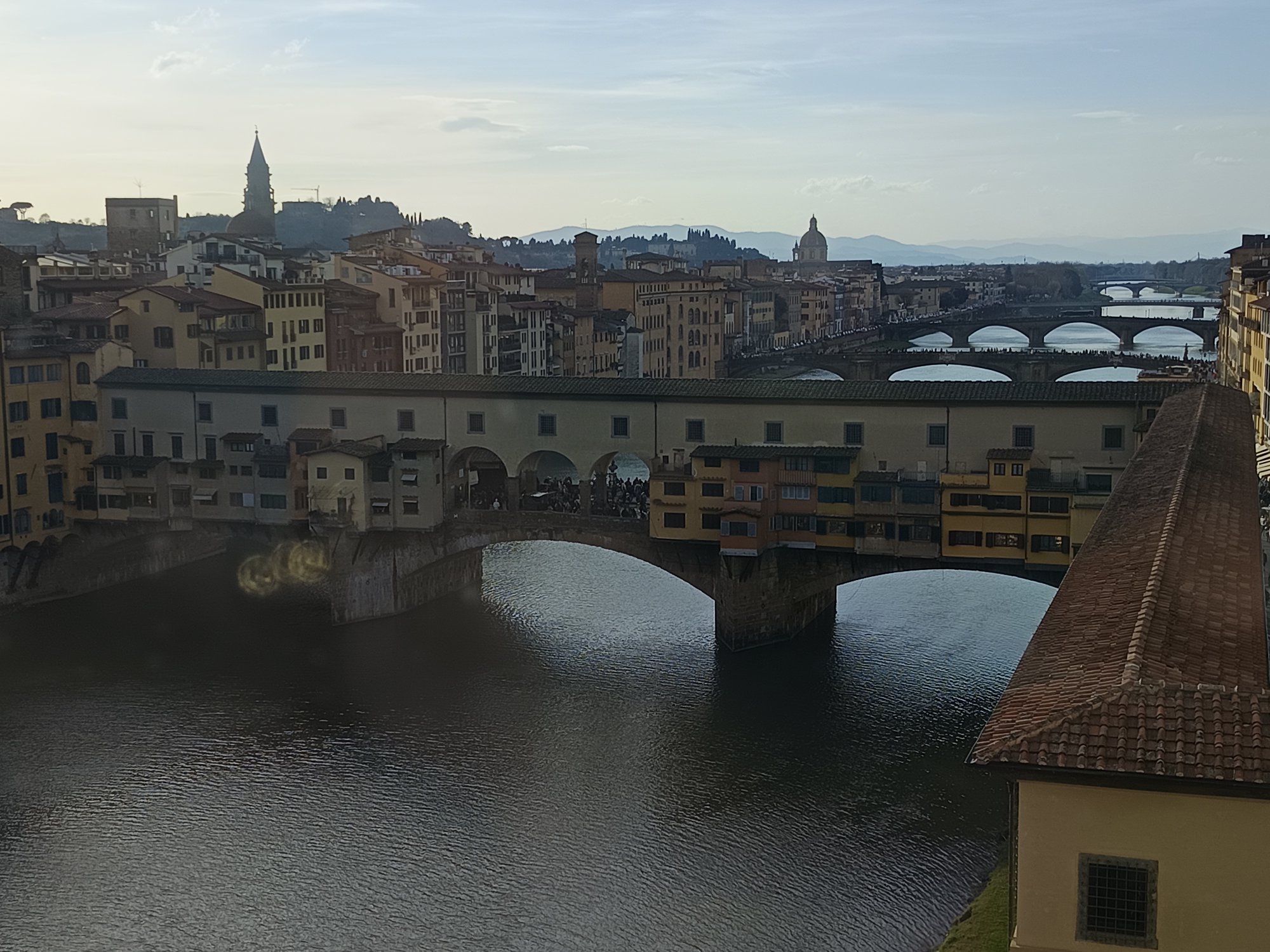 Και την ώρα που δύει ο ήλιος, το φως πέφτει στον ποταμό Άρνο και στην πόλη με τρόπο που την κάνει ακόμη πιο όμορφη.