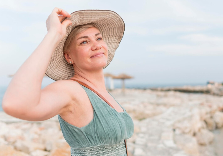 Ο ήλιος δεν κάνει διακρίσεις και η επιδερμίδα σου στην εμμηνόπαυση μπορεί να γίνει πιο ευαίσθητη στις υπεριώδεις ακτίνες.